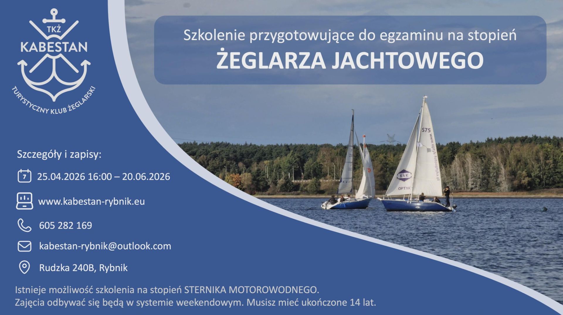Szczegóły pod telefonem codziennie po 15:00: +48 605 282 169 lub email: kabestan-rybnik@outlook.com.